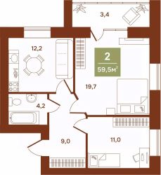 Продаётся 2-комнатная квартира в строящемся доме (Аргентовского, 125), срок сдачи: I-кв. 2027, общей площадью 59.5 кв.м., на 6 этаже. Новый жилой дом от застройщика "Эверест" расположен по адресу: г. Курган, улица Аргентовского.