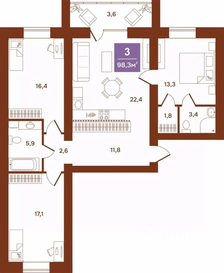98,3 м²