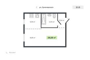 Продаётся 1-комнатная квартира в строящемся доме (Дом 1), срок сдачи: II-кв. 2026, общей площадью 28.58 кв.м., на 2 этаже. Новый жилой дом от застройщика "СК Атлант" расположен по адресу: г. Курган, улица Луначарского.