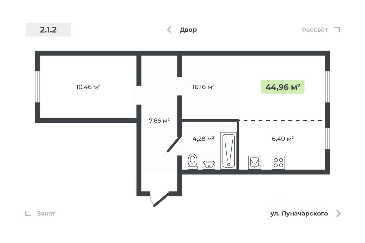 Продаётся 2-комнатная квартира в строящемся доме (Дом 1), срок сдачи: II-кв. 2026, общей площадью 44.96 кв.м., на 4 этаже. Новый жилой дом от застройщика "СК Атлант" расположен по адресу: г. Курган, улица Луначарского.