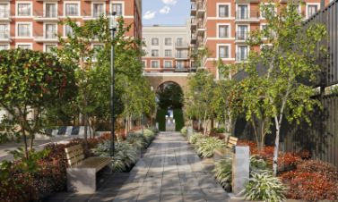 Прямой выход в городской сквер расширяет функционал двора. Жители смогут быстро попадать в общественную зону с фонтаном, детскими и спортивными площадками и местами для отдыха.