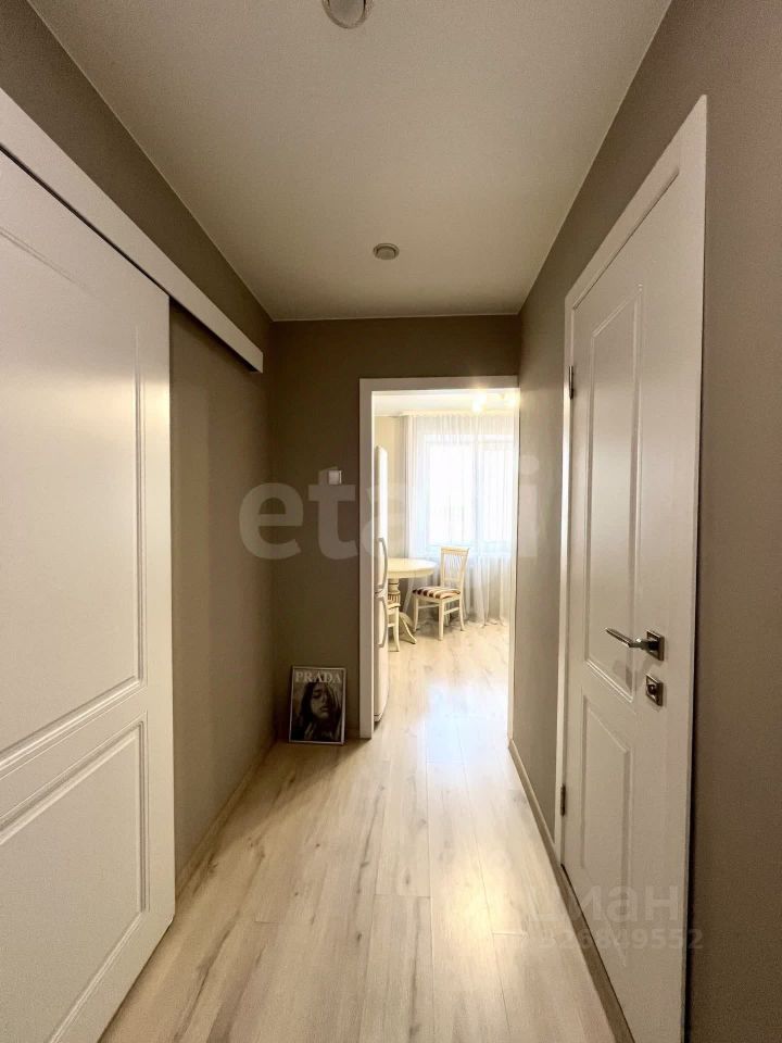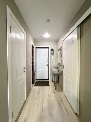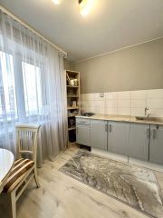 Планировка комфортная - комната с выходом на лоджию, это дополнительная шумоизоляция, установлен кондиционер, санузел совмещен с ванной, имеется гардеробная, где есть подводка под стиральную машину. Просторная кухня.
