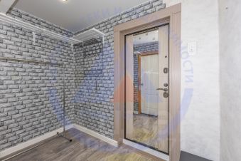 Межкомнатные двери: В одной комнате обычные, во второй - шпонированные. На кухне двери отсутствуют.