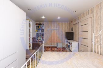 1-комнатная квартира с разделением на 2-комнатную общей площадью 34,4 кв.м. расположена на 6 этаже 9-этажного кирпичного дома (тип "ленинградка"). Год постройки - 1981.В квартире выполнена перепланировка. Комнаты раздельные, санузел совмещён. Окна выходят на одну сторону дома (на улицу). Балкон застеклен. Установлен домофон, есть помещение для хранения велосипедов и колясок.