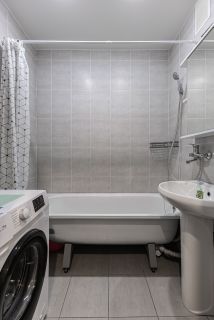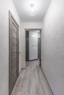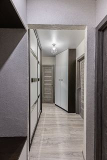 Качественный ремонт. Натяжные потолки, ламинат во всех комнатах, пластиковые окна с тройным остеклением. Современная кухня, электроплита. В санузле плитка, кафель. Водонагреватель, кухонный гарнитур и 2 встроенных шкафа остаются новым владельцам.