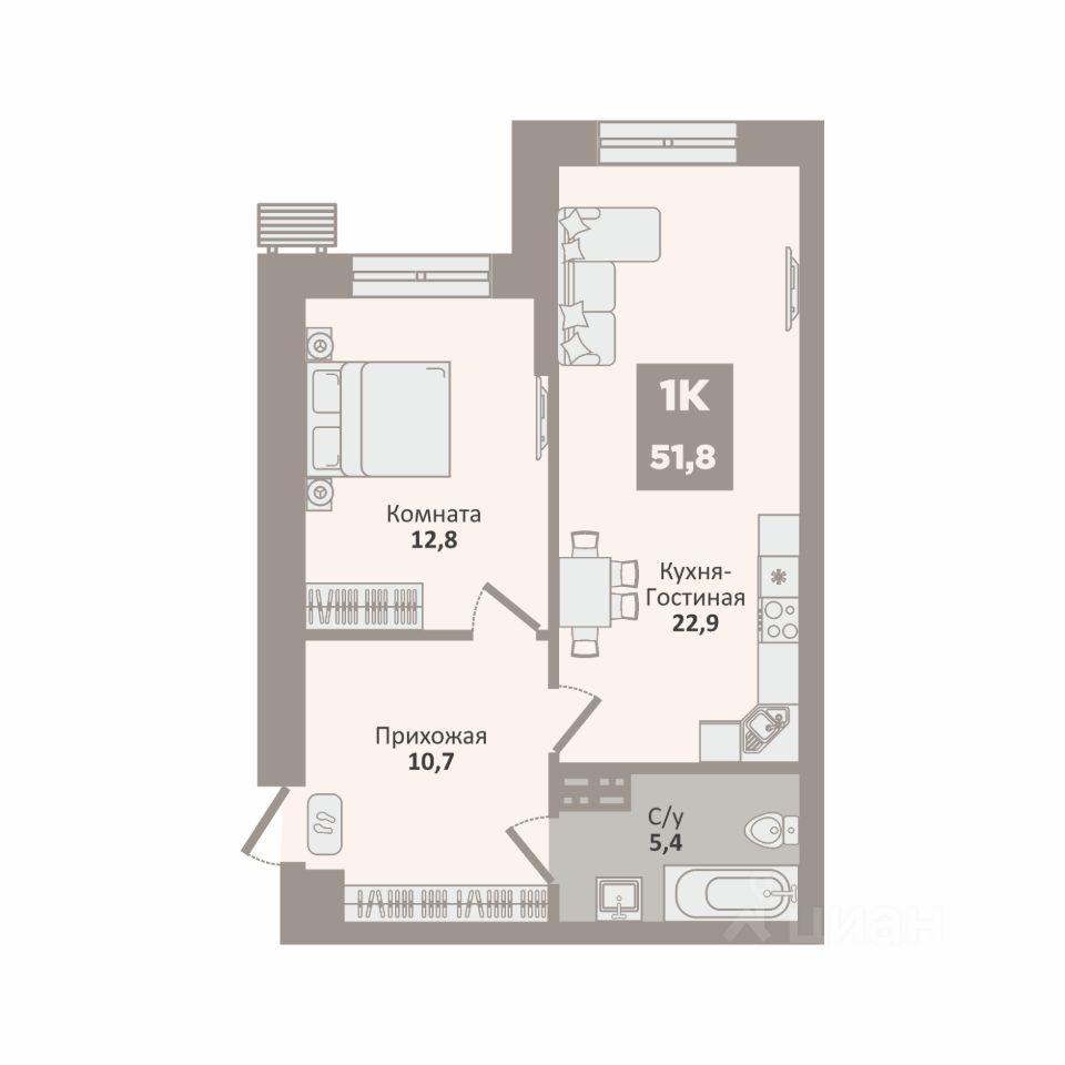 Концептуальная планировка 1-комнатной квартиры 86 во втором этапе Жилого комплекса "12" — идеальное место для комфортной жизни!