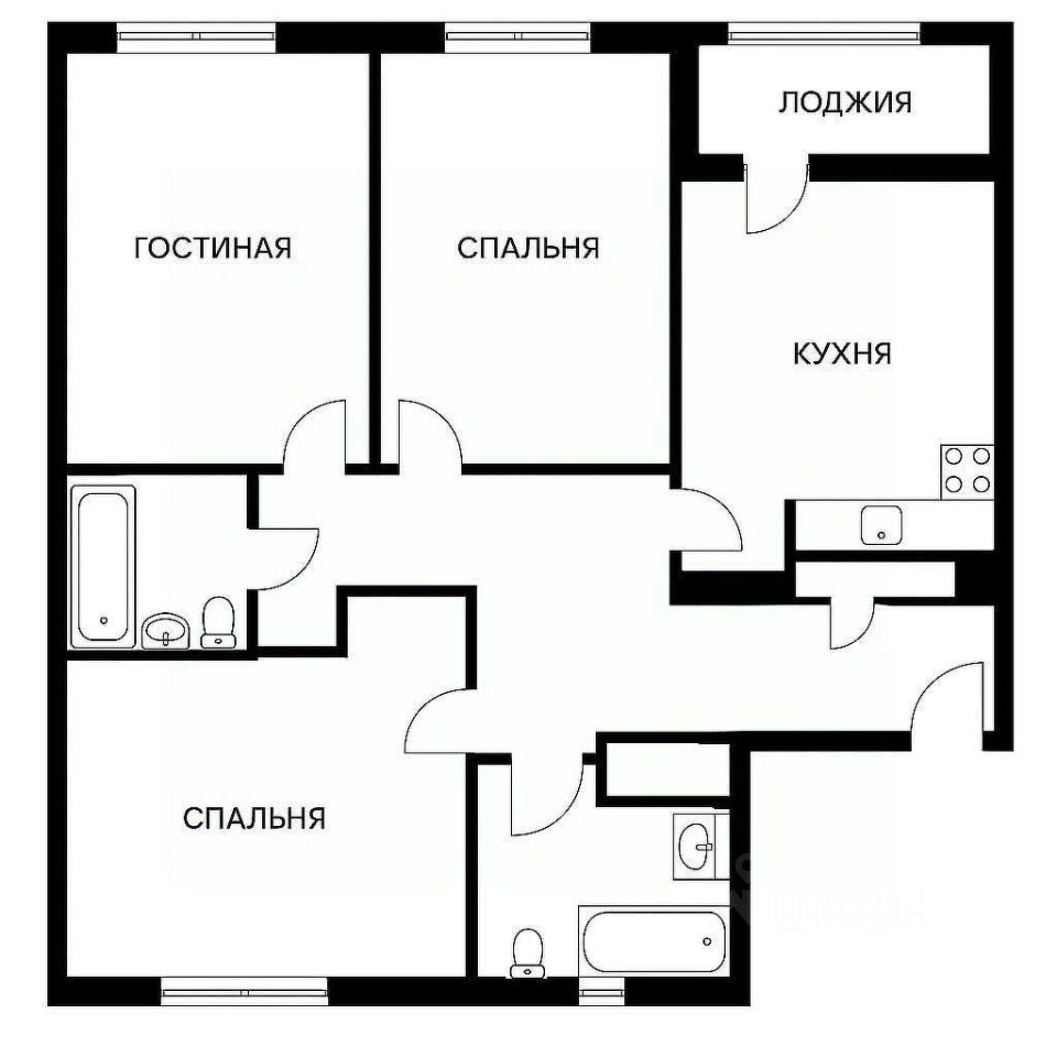 Санузлы раздельные, полностью облицованы плиткой. В одной ванной — душевая кабина, стиральная машина и бойлер, в другой — ванна и современная сантехника. Все помещения чистые и ухоженные.