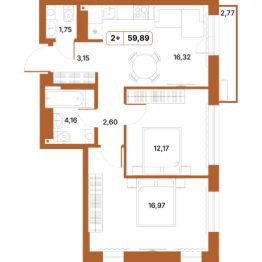 Продаётся 2-комнатная квартира в строящемся доме (Дом 1), срок сдачи: II-кв. 2027, общей площадью 59.89 кв.м., на 13 этаже. Новый жилой комплекс "по ул. Чернореченская" от застройщика "СЗ Лайм. Инвест" расположен по адресу: г. Курган, Чернореченская улица.