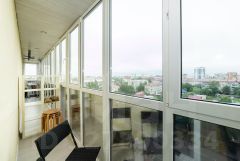 -Панорамный балкон 11 м, с видом на ночной город, сделан тёплый пол, утеплен.