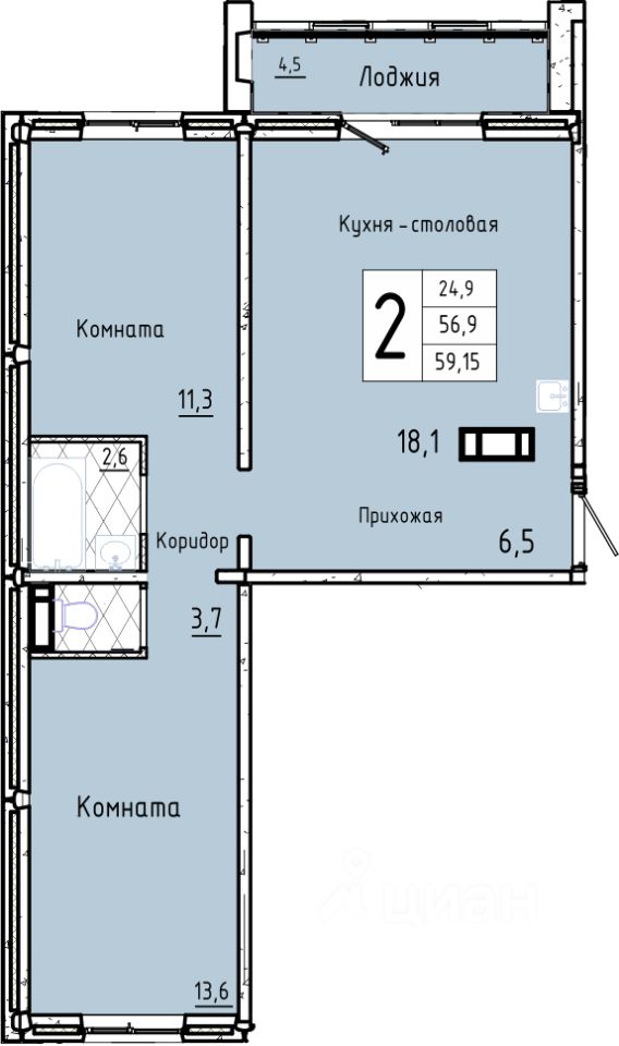 59,15 м²