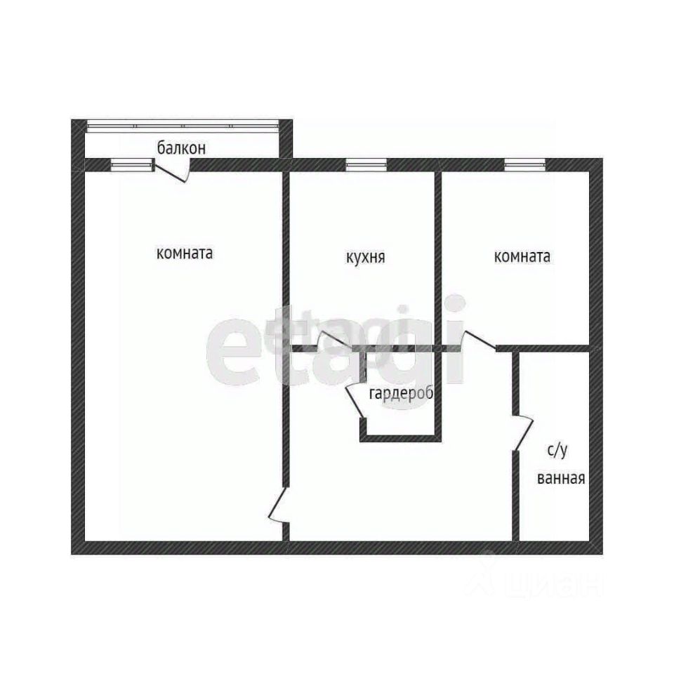 Общая площадь 52,1 кв.м, жилая 30,6 кв.м.