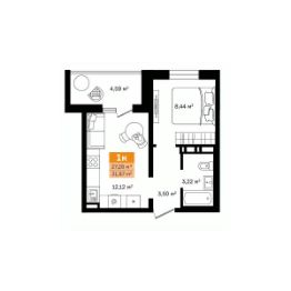 Продается 1-комн. квартира, 31,87 м²
