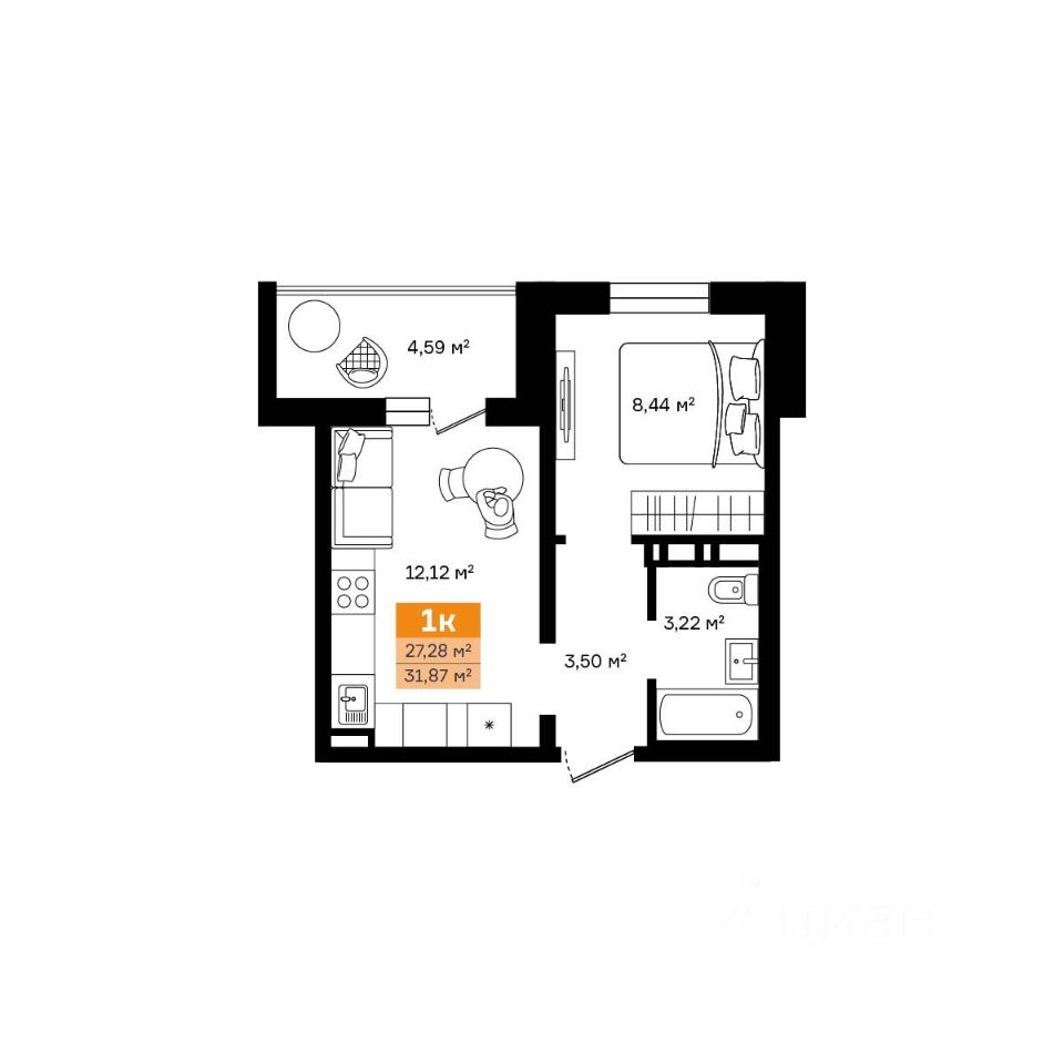 Общая площадь31,87 м²