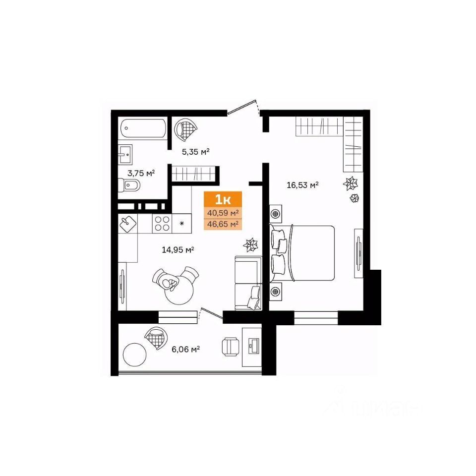 Общая площадь46,65 м²