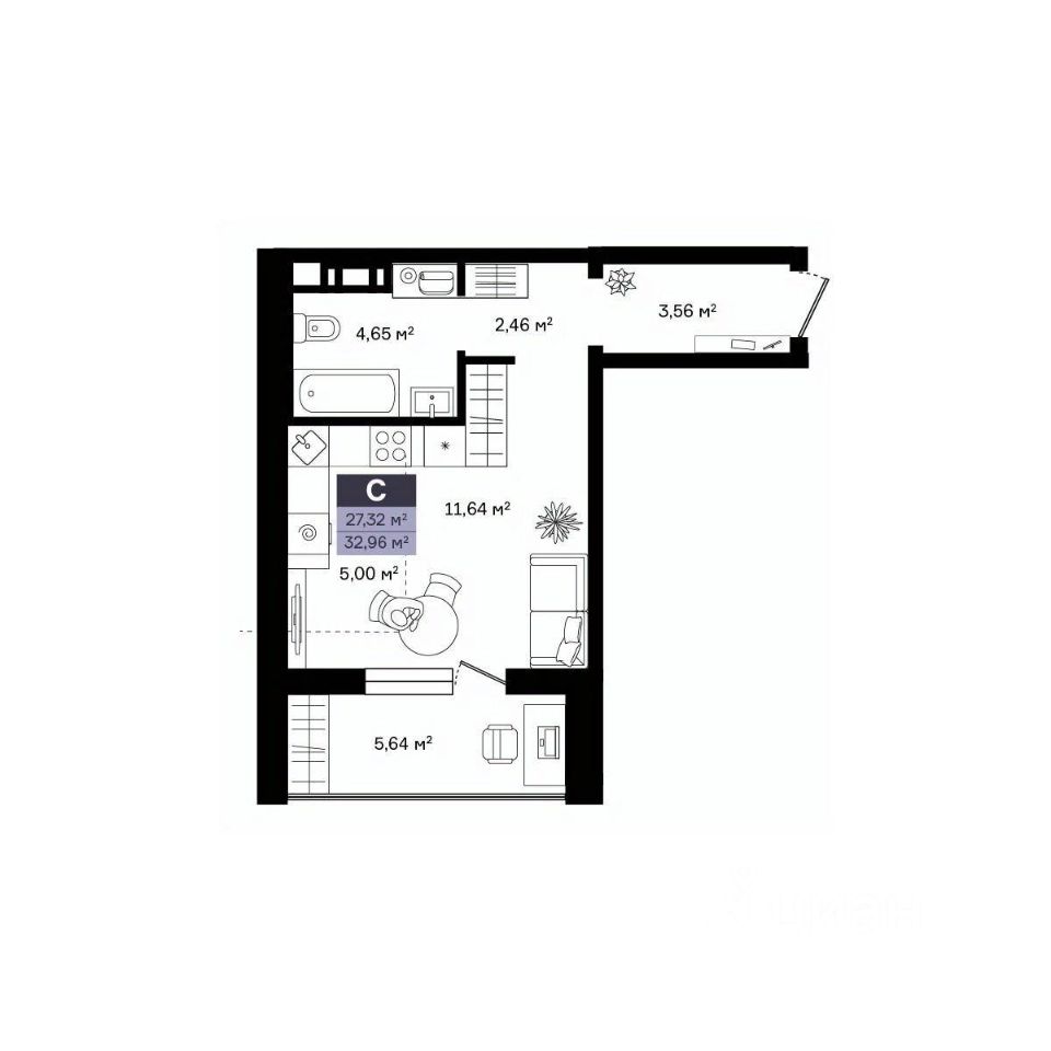 Общая площадь32,95 м²