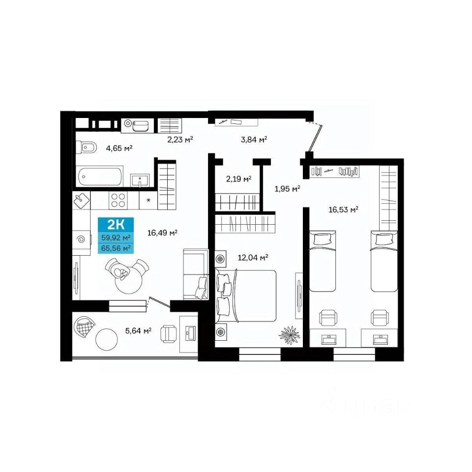 Общая площадь65,56 м²