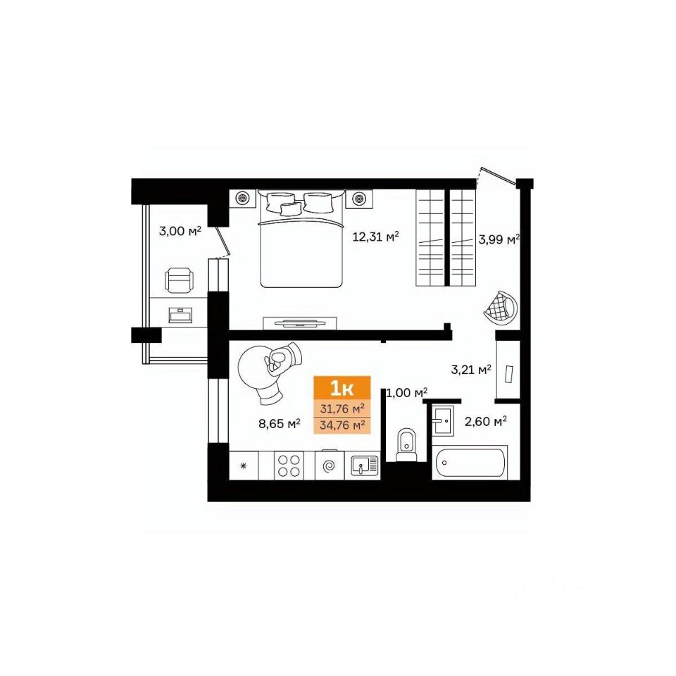 Общая площадь35,39 м²