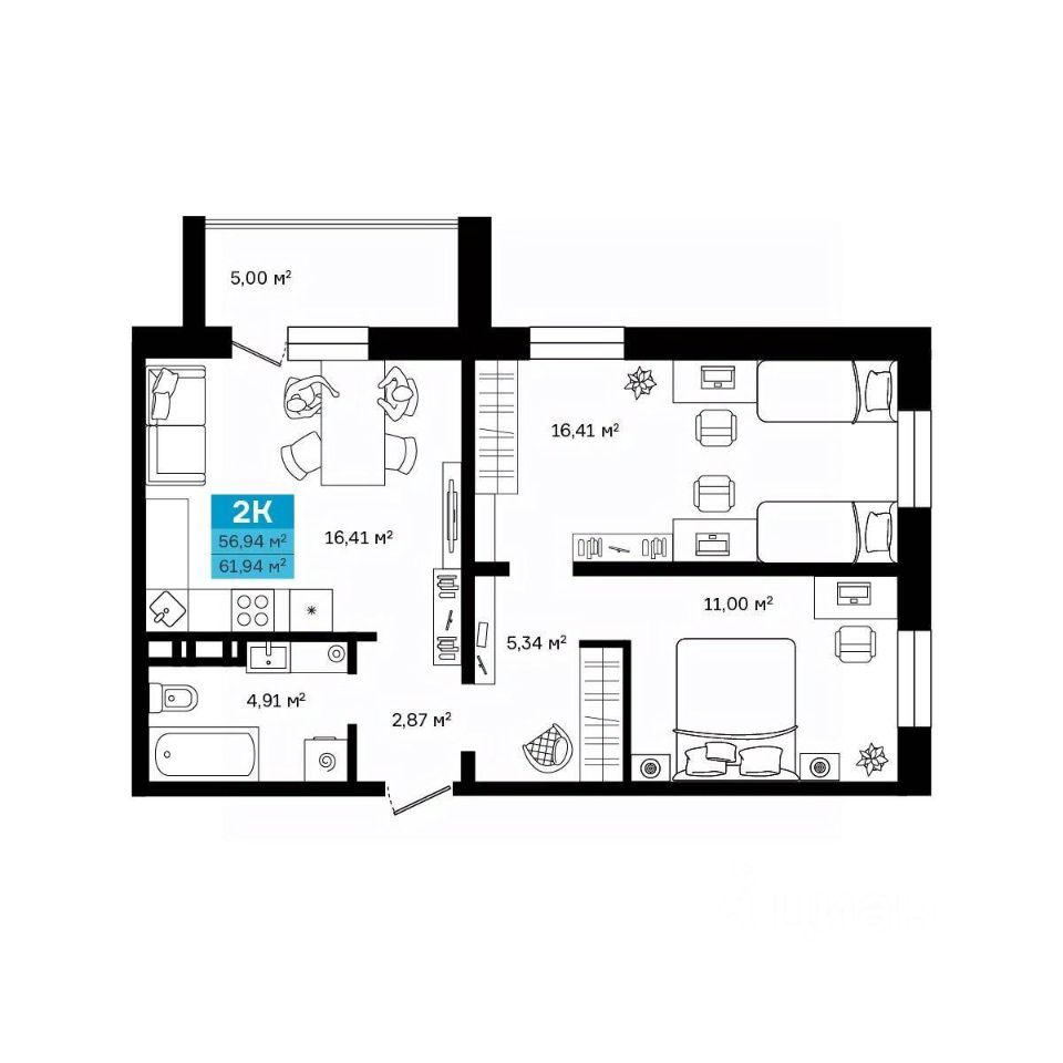 Продается 2-комн. квартира, 61,94 м²