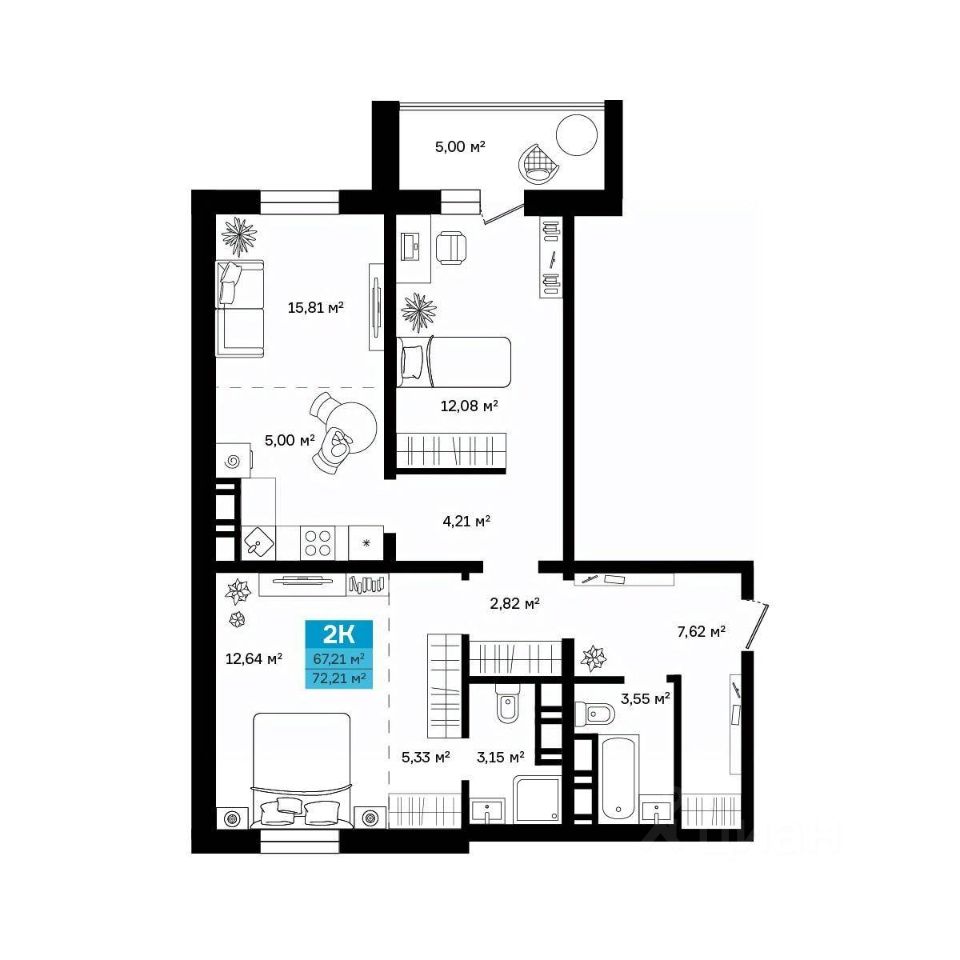 Общая площадь72,21 м²