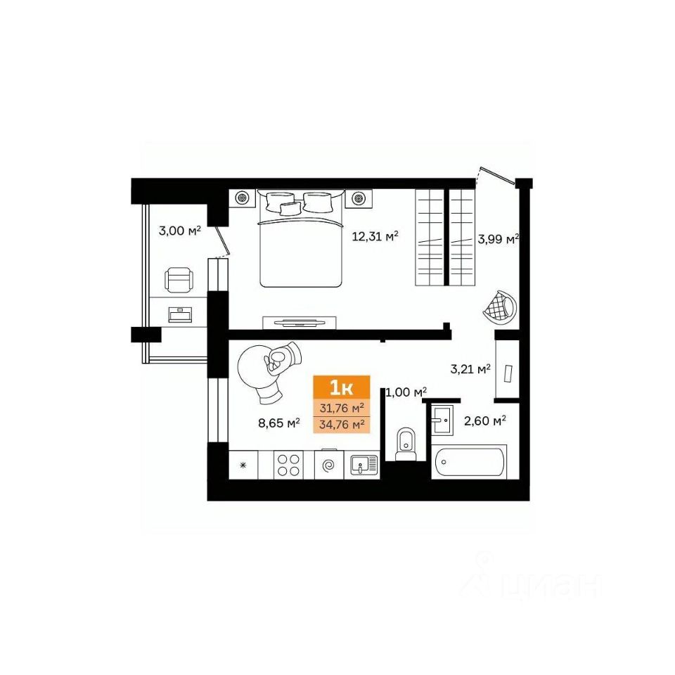 Жилая площадь12,3 м²