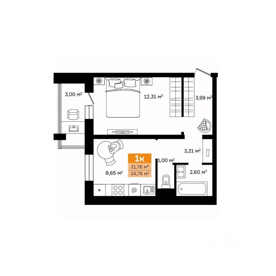 Общая площадь35,39 м²