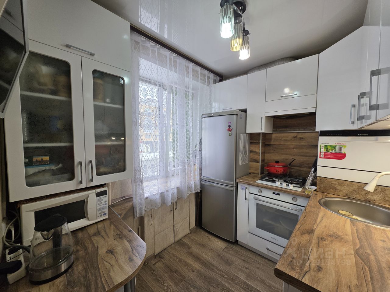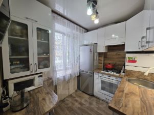 В квартире сделан косметический ремонт. Окна ПВХ, трубы все поменяны, счетчики новые, на полу линолеум, потолок частично натяжной, в ванной сделан ремонт, квартира тёплая, светлая и уютная!