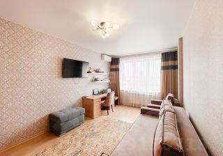 Окна выходят на солнечную сторону, открывая шикарную панораму на центр города, по праздникам видны салюты.