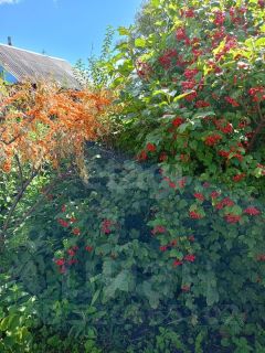Главное преимущество участка — плодородная земля с многолетними насаждениями. Здесь растут яблони сортов Белый Налив, Мельба, Уэлси, Боровинка, Октябрьская и Уралец, а также груша, вишня, черноплодная рябина и калина. Ягодные кустарники включают два дерева облепихи, кусты черной и красной смородины. Отдельного внимания заслуживают четыре грядки сортовой клубники, дающие стабильный урожай. Участок украшают хвойные и декоративные растения: пихта, туя, жасмин и чубушник.