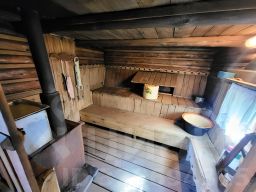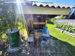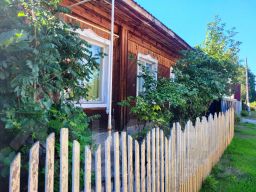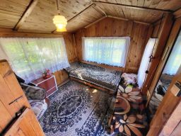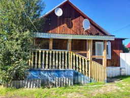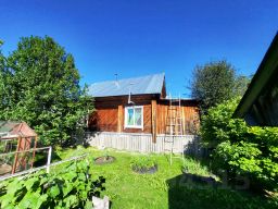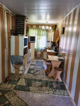 Бревенчатый дом 1994 года постройки: кухня-гостинная + две раздельные комнаты + кладовая/гардеробная + летняя (неотапливаемая) комната.