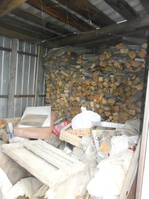 Хозяева оставят железо и стекло на ещё одну теплицу, 2 бака под воду на 1,5 и 2 куб.м., насос, дрова и ещё много чего.