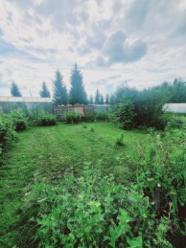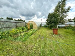 Дом расположен на участке площадью 22 сотки, который разделен на 2 части, огорожен забором из профнастила по всему периметру. На участке проведена вода по всей территории (полив из реки), множество посадок (хвойники, деревья, кустарники), 2 теплицы, летний туалет/душ, мангальная зона, складное помещение.