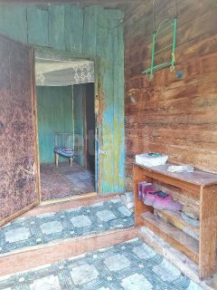 Окна: в одной комнате пластиковое, в остальных — деревянные. Выходят во двор и на улицу.