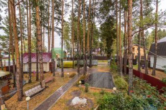 Территория освещена прожекторами и фонарями — уютные вечера на свежем воздухе.
