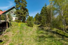 Участок двухуровневый. На первом высоком уровне находится дом, баня,беседка ,две мангальных зоны, детская площадка, поле для футбола, бадминтона и т.д. На нижнем уровне участка лог ( небольшая речка), гараж на две машины, навес ещё для одной машины. С участка есть отдельный спуск к пляжу реки Тобол. Участок огорожен железным забором,ворота открываются автоматически.