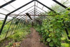Земля разработана, есть множество насаждений. На участке большая теплица, хоз. постройка, навес. Есть место для мангальной зоны, детской площадки.
