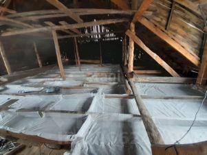 Потолок планируется утеплить опилом.