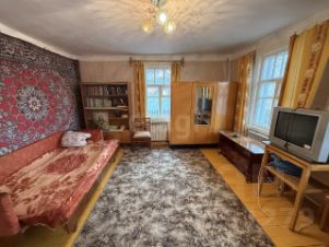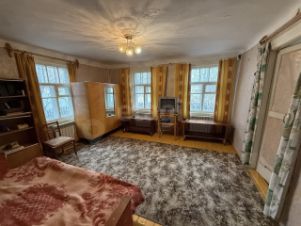 3 комнаты, кухня, сени, окна деревянные, на полу на кухне линолеум, в остальных комнатах крашеное ДВП.