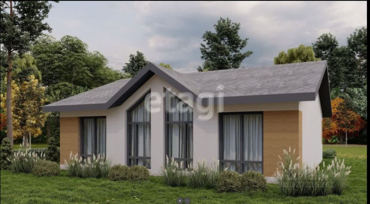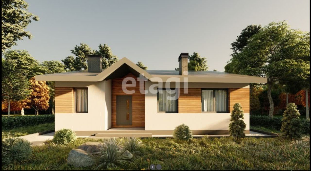 В доме - просторная кухня-гостинная, три отдельные комнаты.