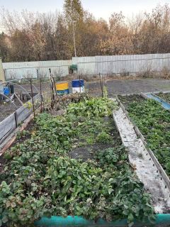 Инфраструктура территории включает баню, две теплицы для выращивания урожая, железный гараж, хозяйственные постройки и зону отдыха с беседкой и мангалом. Все дорожки выложены бетоном, что обеспечивает чистоту и удобство в любое время года. Ухоженный сад с яблонями, грушами, кустами смородины и крыжовника, а также многолетние декоративные насаждения создают законченный образ поместья.