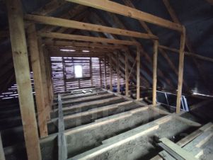 Дом из бруса, черновая отделка, по фундаменту 10х9м + пристроена веранда 10х3 м. На 2-м мансардном этаже возможно еще обустроить около 50 кв.м. Установлены тройные стеклопакеты, утеплен потолок, скважина с питьевой водой, погреб обложен кирпичом, обслуживаемый септик, газ подведен к участку.