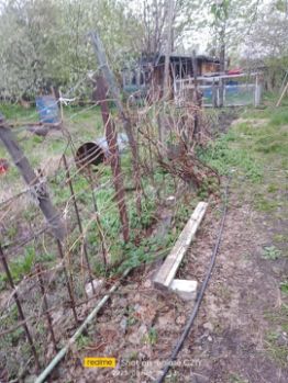 Участок огорожен деревянным забором. Заведено электричество, по улице идет газ. Крытый 5-метровый колодец с питьевой водой, от которого насос закачивает воду в железные баки 3 и 2 куб. м.