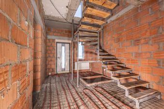 В квартире установлен газовый котел, теплый пол, черновая лестница на 2 этаж, окна.