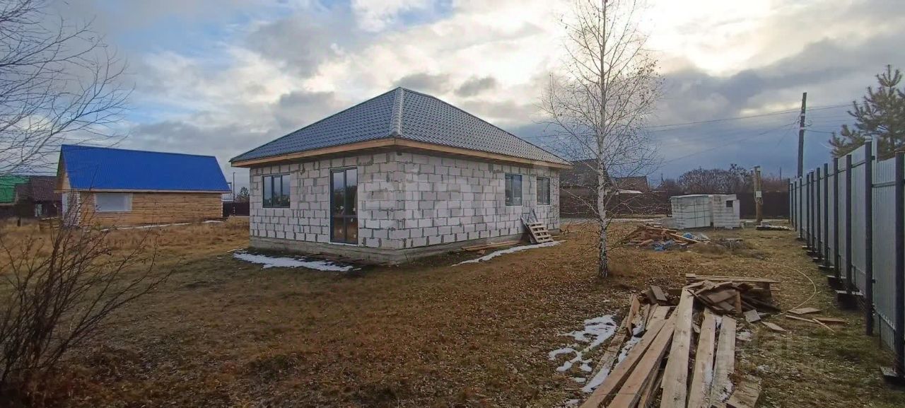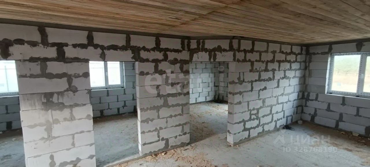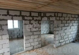 Дом построен из газоблоков 300 мм на плитном фундаменте 810 м. Крыша из металлочерепицы. Сделан черновой потолок. Установлены хорошие окна (ламинированные, со стороны улицы графит). Профиль окон 70 мм, стеклопакет 40 мм. Входная дверь тонирована. С противоположной стороны установлен панорамный вход.