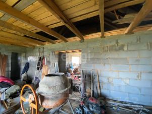 Дом сделан из газоблока. Установлены стеклопакеты. Электричество заведено в дом. Источник воды на участке - скважина. Газ заведен на участок, но не подключен.