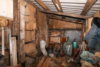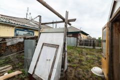Участок огорожен профлистом. Есть небольшой гараж, баня, сарай с дровами. Скважина.