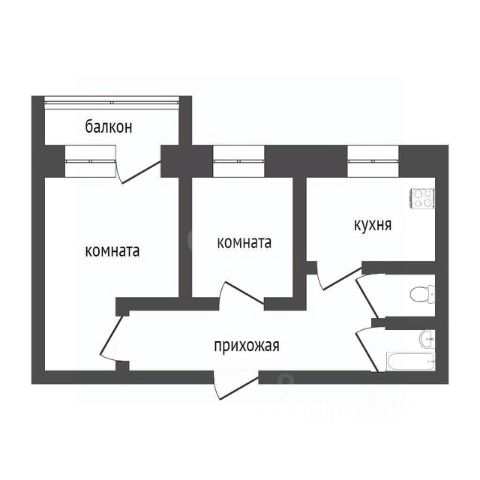 Прихожая, кухня, гостиная, спальня/детская, санузел, лоджия (7 м., выход на лоджию из гостиной и кухни).