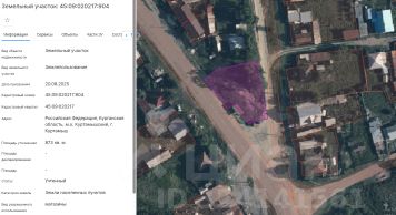 Земельный участок с кадастровым номером 45:09:020217:904, площадью 873 кв.м, из земель населенных пунктов, расположенного по адресу (местоположение): Российская Федерация, Курганская область, м.о. Куртамышский, г. Куртамыш, вид...