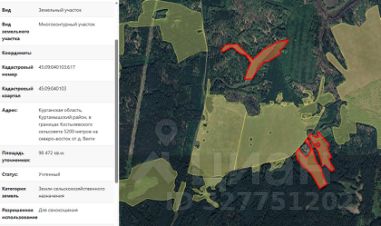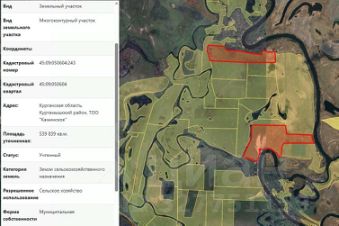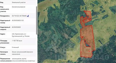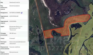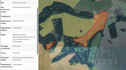 Земельный участок с кадастровым номером 45:09:010103:400, площадью 55325 кв.м, из земель сельскохозяйственного назначения, расположенный по адресу (местоположение): Курганская область, Куртамышский район, 6,4 км, 6,7 км, на севе...