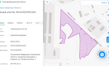 Земельный участок с кадастровым номером 45:22:030119:2333, расположенного по адресу: Курганская область, Шумихинский район, г. Шумиха, ул. Промышленная, 2, общей площадью 46794 кв.м., с видом разрешенного использования: охрана...